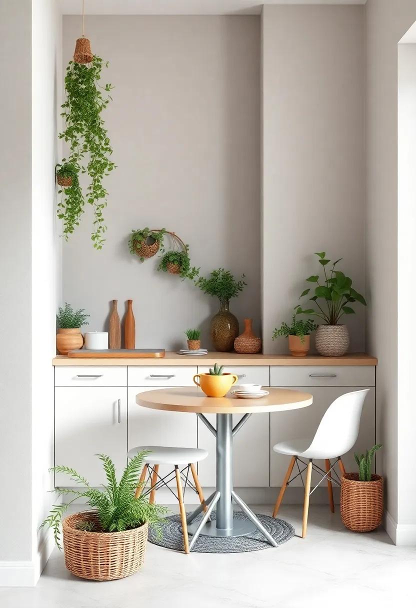 Moreover, integrating smart organization options will elevate the functionality of your space. Use vibrant baskets or decorative boxes on shelves to keep your items organized and easily accessible. A magnetic spice rack can free up drawer space while adding a pop of color to your kitchen walls. Additionally, take advantage of corners by placing a small corner shelving unit for cookbooks or small plants. A well-planned layout, combined with stylish storage solutions, can transform your small kitchen into an inviting breakfast nook where style and practicality coexist seamlessly.