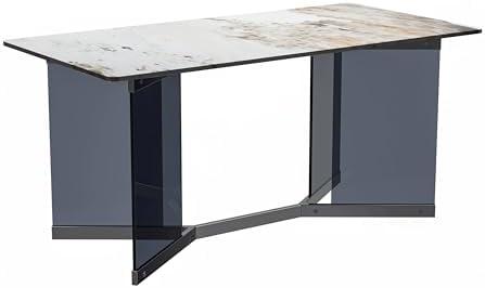 Modern Rectangular Table with Glass/Sintered Stone Top and Stainless Steel Base, Seats 4 to 8