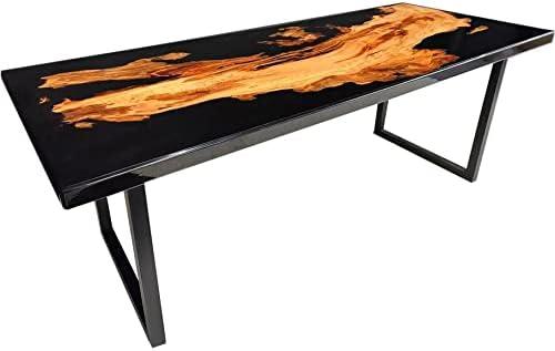 This modern dining table is crafted from solid walnut wood and features a sleek black epoxy resin finish, making it a stunning centerpiece for any dining or living space. Measuring 86 inches in length and 35 inches in width, it offers ample space for family meals or board games with friends, while its unique epoxy resin accentuates the natural beauty of the wood. The durable metallic legs provide stability and support, ensuring longevity regardless of usage frequency. Its elegant and straightforward design easily blends with various décor styles, from modern farmhouses to contemporary apartments.