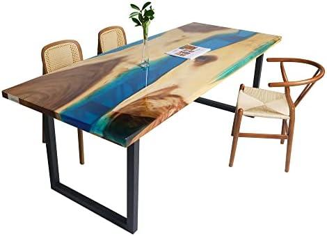 This stunning piece features a beautiful blue center that represents a serene lake, perfectly paired with rich walnut wood that gradually changes color, creating an illusion of a flowing river. Each table is a unique masterpiece, showcasing strong, tight wood grain that adds to its natural appeal. Designed to comfortably accommodate 8-10 people, it is perfect for dining rooms or large conference spaces. The iron legs not only provide durability but also complement the table’s organic aesthetic, while pre-drilled holes make assembly a breeze.