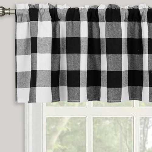 Stylish Black and White Plaid Kitchen Valances with Rod Pocket Design