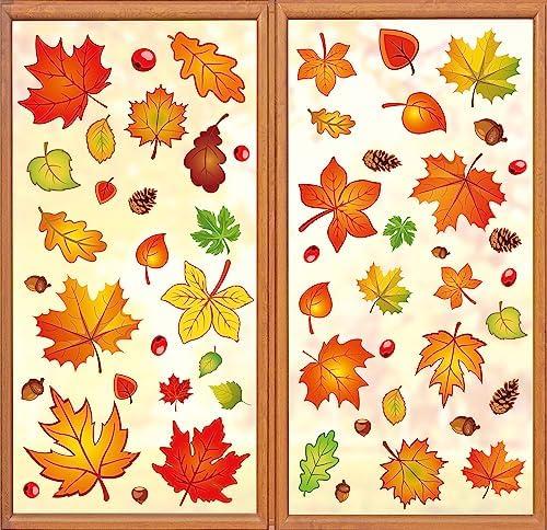 Transform your space with these vibrant and delightful window decorations, featuring a variety of classic autumn designs including maple leaves, pine cones, and acorns. Each of the 9 sheets measures 20x30cm (7.8×11.8 inches) and showcases double-sided printing. This allows bright, vivid colors and patterns to be clearly seen from both outside and inside, creating an inviting atmosphere that captures the essence of the fall season. These clings are designed to adhere well to smooth surfaces such as glass, tiles, and mirrors, making them versatile for home, school, or party decorations. Water activation enhances their adhesion, and they can easily be removed without leaving any residue, allowing for hassle-free seasonal updates.