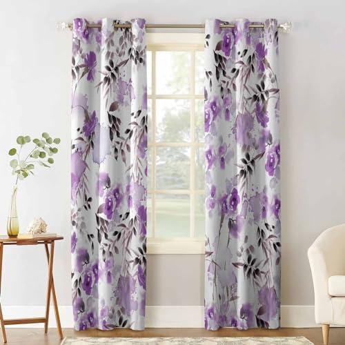 These beautifully designed drapes feature a striking watercolor pattern showcasing purple plants and brown leaves, elevating the aesthetics of any space while providing functionality. With a length of 45 inches and sold as a pair, they cover a total width of 84 inches, making them suitable for various window sizes. Notably, they are thermal insulated, effectively regulating room temperature year-round, keeping warmth in during winters and maintaining coolness in summers. Their blackout feature not only ensures a restful sleep by blocking out sunlight but also serves as a noise-reducing barrier against the hustle and bustle of external environments.