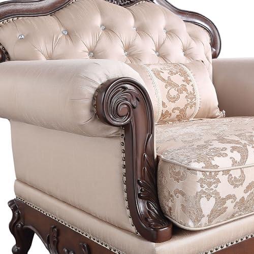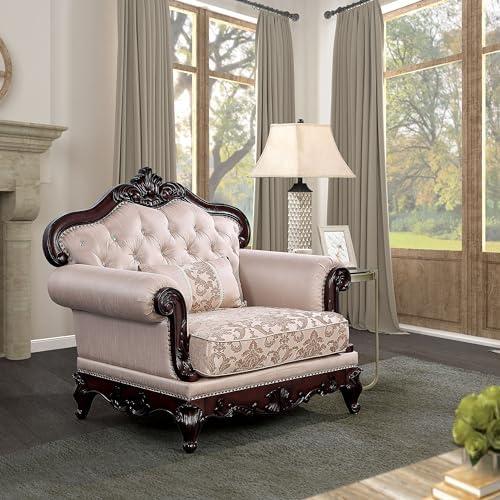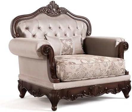 In our journey to elevate our living spaces, we have come across a mesmerizing accent chair that truly captures the essence of style and comfort. The chair features a beautiful floral pattern that invites a touch of elegance, reminiscent of the palatial beauty of past eras. As we admire the rich brown hues and faux wood carvings, it’s clear that the quality of the fabric is designed for everyday living. The option to choose between beige and light brown provides versatility, allowing this furniture piece to seamlessly fit into various décor styles. The box-seat cushions, complete with meticulous welt trim, promise not only aesthetic appeal but also functionality, making it perfect for our daily relaxation and lounging needs.