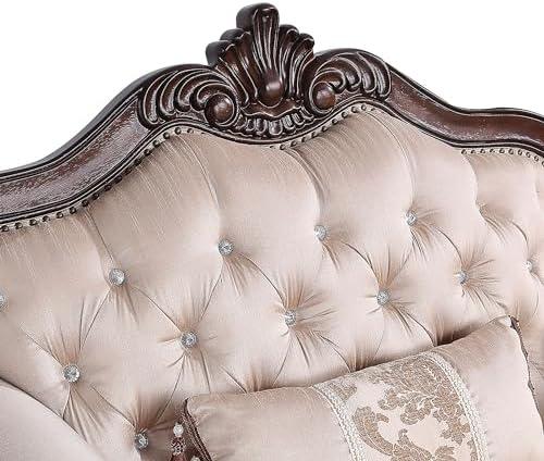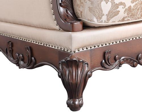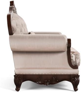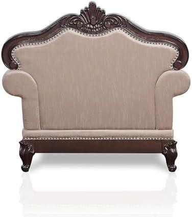 Delving into the aesthetics of this exquisite chair reveals a careful blend of timeless elegance and modern comfort. The wingback design stands as a focal point in any room, elegantly commanding attention while offering a cozy retreat. Adorned with a rich floral pattern, every detail from the button-tufted back to the gleaming nailhead trim reflects a craftsmanship that speaks to refined tastes. The exceptional finish, whether in light brown or beige, is complemented by beautifully crafted faux wood carvings that add depth and character, making it an instant classic in our living space.