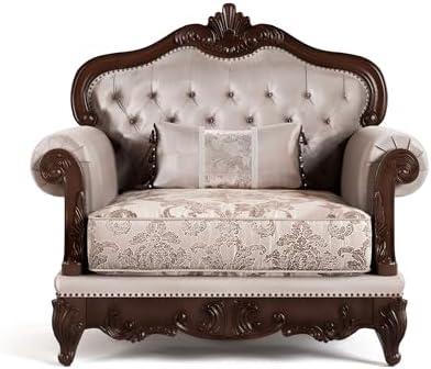 The allure of this chair extends beyond beauty; its functional design marries artistry with everyday practicality. Included accent pillows offer additional support and a splash of contrast in decor, allowing us to personalize our seating experience. This exquisite piece, constructed from a blend of solid wood, foam, fabric, and resin, promises durability alongside its aesthetic appeal. With dimensions that fit perfectly into both living rooms and home offices, it transforms any corner into a luxurious retreat. This chair is not merely furniture; it embodies a lifestyle of grandeur and relaxation. Discover the Elegance Today!