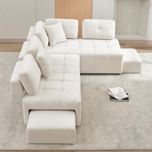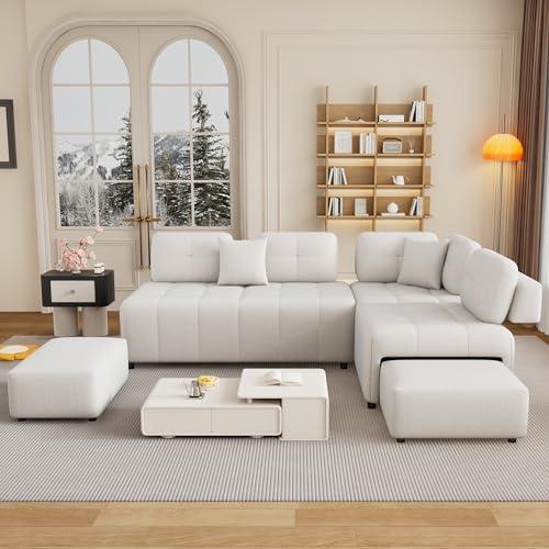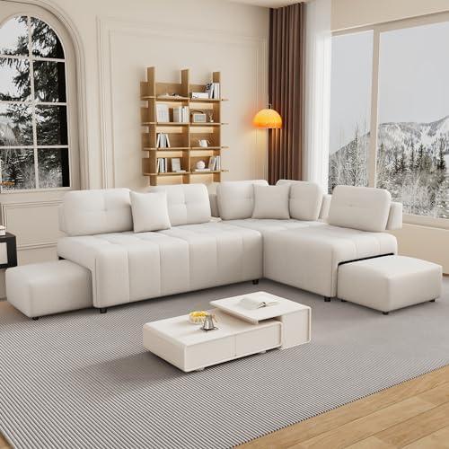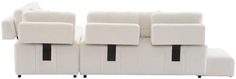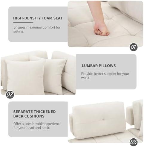 We can’t help but admire the stylish design elements that this sectional sofa brings to any space. The beige chenille upholstery not only lends a warm, inviting tone but also offers a touch of sophistication. The thoughtful incorporation of two hidden stools beneath the seating area is a standout feature, allowing for extra seating while maintaining a clutter-free environment. When the stools are not in use, they can be effortlessly tucked away, making the sofa perfect for smaller living areas or those who love to host gatherings without compromising on style. Additionally, the removable lumbar pillows enhance both comfort and aesthetics, providing essential support while elevating the overall look of the couch.
