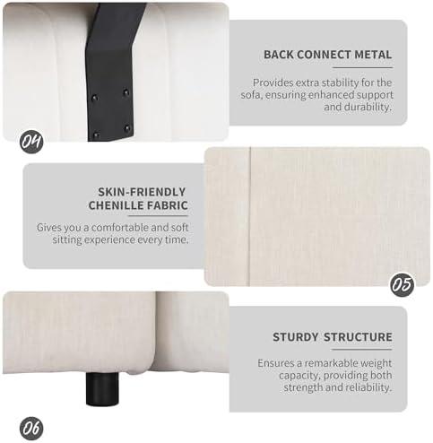 In terms of maintenance, it’s essential to keep the sofa looking its best, and we found that care is quite manageable. The chenille fabric is not only stylish but also designed to withstand the everyday hustle and bustle. Regular dusting and a gentle wipe with a damp cloth are all it takes to maintain its pristine appearance. It’s advisable to avoid direct sunlight and harsh chemicals to prolong its life. Additionally, the removable lumbar pillows offer both comfort and convenience for easy cleaning. With a weight capacity of 200 lbs per seat, it promises durability for everyday use, making it a practical choice for families. We can confidently recommend this sofa for anyone seeking a blend of functionality and elegance in their living space. Check it out here!