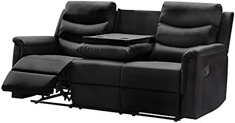 When we delve into the design features of this living room set, the first aspect that catches our eye is the sleek, black faux leather upholstery. This material not only presents a sophisticated aesthetic but also promises durability and ease of maintenance, allowing us to enjoy our space without the constant worry of spills or stains. The pillow top arms and cushion back provide comfort without compromising style, inviting us to sink in and relax. Moreover, the thoughtfully designed manual reclining mechanisms allow us to effortlessly adjust the seating position, making it a perfect addition for those cozy movie nights or lazy afternoons. The inclusion of a drop-down coffee table enhances the functionality, providing a space to enjoy our drinks or snacks while watching our favorite shows.