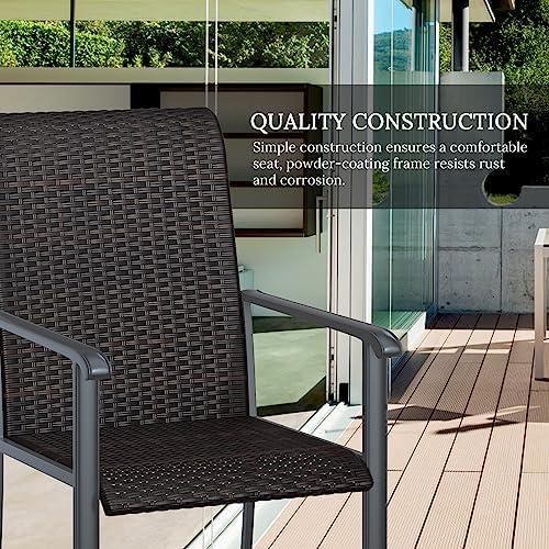 | Comfortable patio chairs with smooth armrests and a curved backrest. | The wicker material, while durable, may require occasional cleaning to maintain its appearance. |