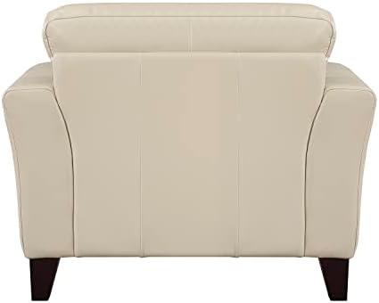 Our recent experience with this elegant chair has truly redefined what it means for comfort to meet style. The cream leather upholstery exudes a sense of sophistication, while the soft, foam boxed pocket coil cushion hugs us in just the right way. We appreciate the combination of supportive qualities and contemporary design elements, such as the track arms and tufted cushion, creating a welcoming environment in our living space. The chair’s espresso-finished wood feet not only add a touch of warmth but also provide sturdy support, making it an ideal place for long hours of relaxation or social gatherings.