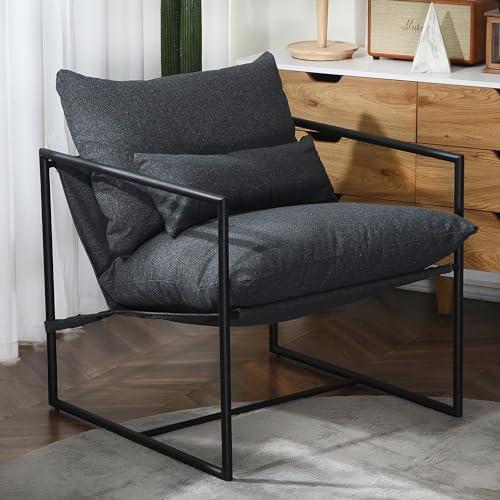 This industrial-style armchair combines comfort and aesthetic appeal, designed specifically for modern living spaces. Upholstered in breathable linen fabric, it ensures a cozy seating experience while being easy to clean, making it a practical addition to any home. The extra lumbar pillow enhances comfort, providing additional back support for extended lounging or reading sessions. Furthermore, its durable metal frame is capable of bearing weights up to 330 lbs, promising reliability and longevity in various environments.