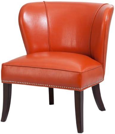 This accent chair showcases a striking tangerine faux leather upholstery that adds a contemporary flair to any room. Constructed from a durable combination of solid hardwood and plywood, it promises longevity and reliable support. The high-density foam cushions provide the perfect balance of firmness and comfort, making it an ideal choice for relaxation, whether you prefer curling up with a book or enjoying a movie. With a seat dimension of 27″W x 20″D and a total capacity of 250lbs, this chair can accommodate various needs without sacrificing style.