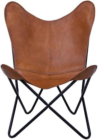 Stylish Tan Leather Chair with Durable Black Metal Base