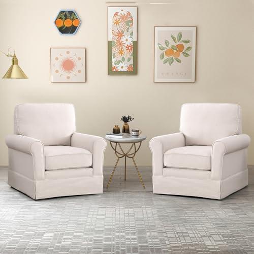 While these chairs present notable advantages, there are certain factors to consider. The compact size makes them ideal for small spaces, but users needing more room may find the seating area somewhat limited. Additionally, the fabric, while stylish and soft, may require regular cleaning to maintain its appearance over time. The max weight capacity of 350 lbs accommodates most users, yet those needing additional strength in their seating should take note. these swivel chairs offer a blend of style and comfort, making them a worthy addition to your home.