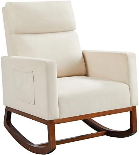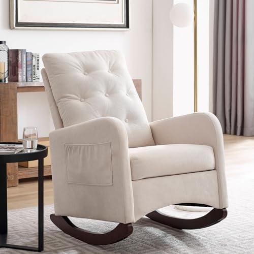 This chic glider chair seamlessly combines modern design and comfort, making it an excellent addition to any living room, bedroom, or nursery. Upholstered in breathable polyester and featuring a sturdy rubber wood base, it ensures a stable sitting experience while its plush high backrest and spacious seat provide ample support. With a delightful rocking motion, this chair allows you to unwind effortlessly. The integrated side pocket is particularly handy for storing books, magazines, or even your mobile devices, keeping essentials close at hand for a cozy reading nook or relaxation spot.