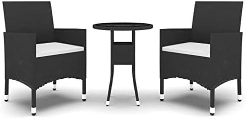 vidaXL 3 Piece Patio Dining Set Poly Rattan Black