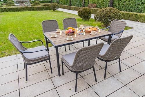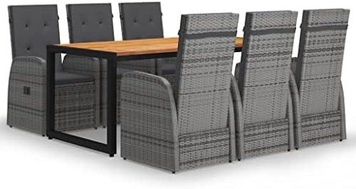 This elegant outdoor dining set features a modern design, making it a perfect addition to your garden, balcony, or terrace. Comprising a spacious table and six comfortable chairs, it offers ample space for family gatherings or casual dining with friends. The sleek gray finish allows it to blend seamlessly with any existing decor, enhancing the aesthetic appeal of your outdoor living space. Crafted from durable materials, this furniture set is designed to withstand various weather conditions while maintaining its stylish look.