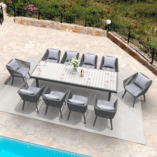 While this dining set is visually appealing and practical, it’s important to note that its large size may require ample space for setup, making it less ideal for small balconies or patios. Additionally, while the materials are weather-resistant, some users may prefer a more traditional wood finish. this product blends functionality and style, making it a fitting choice for outdoor areas. Consider enhancing your outdoor space by exploring this beautiful dining set!
