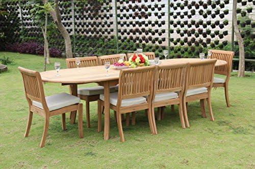 Spacious Teak Wood Outdoor Dining Set with Extensions and Comfortable Chairs