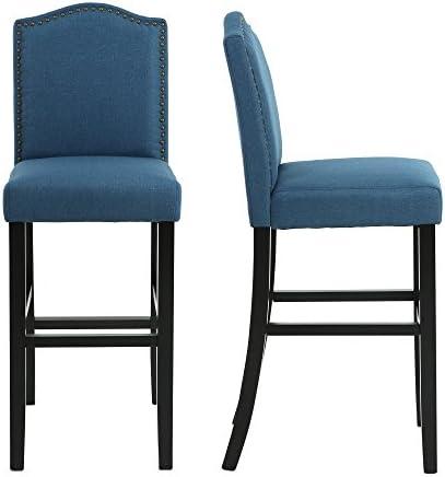 LSSBOUGHT Nailhead 29 Inches Barstools with Solid Wood Legs, Set of 2 (Blue)
