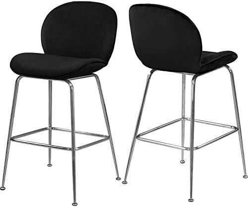 The elegant design is perfect for modern interiors, featuring a sleek black velvet upholstery that not only looks sophisticated but also feels luxurious. The rounded back combined with a minimalist metal frame creates a stunning focal point in any space, whether it be a home bar or kitchen counter. Additionally, the polished chrome metal frame adds durability and a touch of glamour, ensuring that the stool complements your décor while standing up to daily use. The foot rail enhances stability and provides comfort, giving you a supportive place to rest your feet.