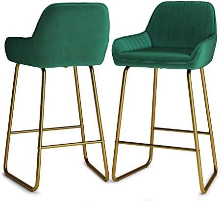 This set of counter height stools brings a contemporary flair to any dining room or kitchen. The plush, cushioned seats and backrest ensure extended comfort, making them an excellent choice for casual or formal gatherings. With dimensions of 20.1″ D x 21.5″ W x 37.8″ H, these stools fit perfectly under kitchen islands or high tables. The durable green velvet fabric, complemented by channel-tufted detailing, adds a touch of elegance and sophistication. The sturdy metal frame, finished in a stylish matte gold, effortlessly blends with a variety of decor styles.