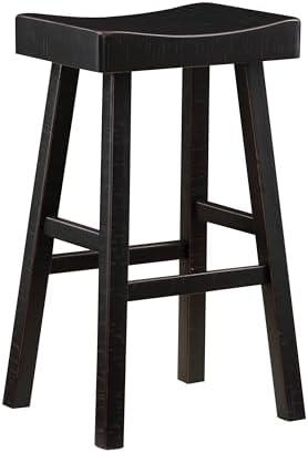This set of two bar height stools features a modern design that seamlessly fits into any decor style. Crafted from solid rubberwood, the black finish provides a chic, contemporary vibe while ensuring durability and stability. The rectangular saddle seat allows for comfort during meals or conversations, and the generous footrest enhances relaxation. With dimensions of 15.5L x 17.5W x 30.5H inches and a weight capacity of up to 250 lbs, these stools are both practical and stylish, making them ideal for counter height tables.