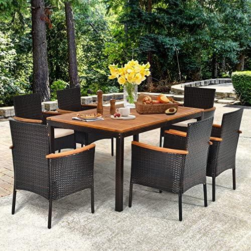 7-Piece Outdoor Dining Furniture Set with Cushions and Umbrella Hole