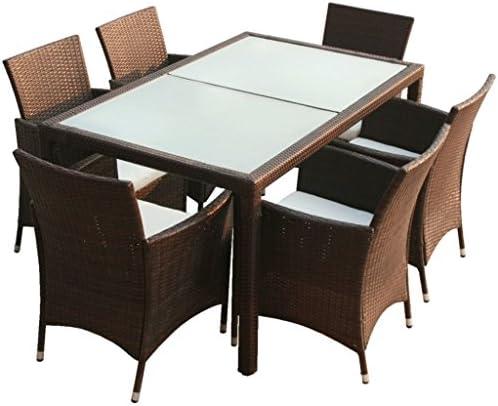 vidaXL Patio 7 pcs Outdoor Poolside Brown Rattan & Wicker Dining Set 6 Chairs + Table