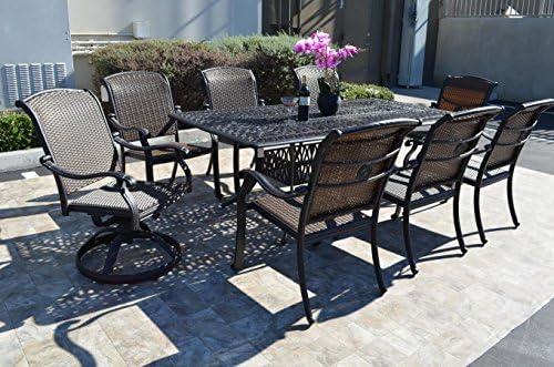 Santa Clara Outdoor Patio 9 pcs Dining Set 44 x 84 Dark Bronze Cast Aluminum