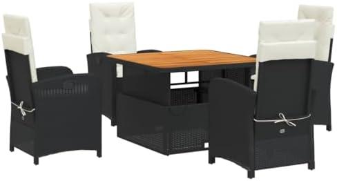 This five-piece dining arrangement combines elegance and practicality, making it a perfect addition to any outdoor setting, whether it’s a garden, backyard, or patio. The construction features durable PE rattan, known for its weather-resistant properties, ensuring longevity while mimicking the aesthetic of natural rattan. The adjustable backrest on the chairs allows for customizable comfort, easily accommodating lounging or dining positions. Additionally, the lift-up table can transition from a coffee table to a dining table, offering versatility for gatherings or intimate meals.