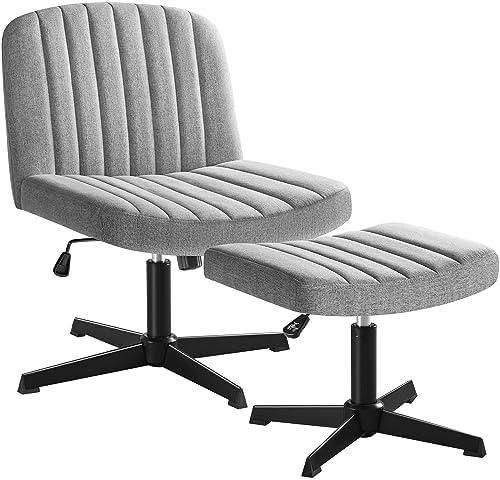 Discover a chair that combines comfort, style, and functionality seamlessly. This armless swivel chair features a wide, cozy seat padded with high-resilience foam, wrapped in soft twill fabric for a luxurious sitting experience. With the ability to comfortably accommodate up to 300 lbs, its robust metal structure ensures stability, making it a reliable choice for both work and leisure. The U-shaped ergonomic design provides excellent back support, following the natural curve of the spine, which alleviates pressure on your back and hips. The adjustable height and 360-degree swivel offer versatility, perfect for any workspace or home environment.