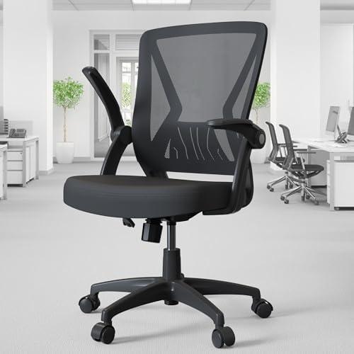 This office chair offers a blend of style and functionality, making it a great addition to any workspace. With its breathable mesh fabric and ‘X’-shaped backrest, it provides excellent lumbar support, alleviating back pain commonly associated with long hours at a desk. The premium cushion is filled with high-resilience foam, contributing to overall comfort and support. Moreover, the height-adjustable feature (ranging from 16.5” to 20.5”) allows it to fit various desk heights, while the reversible armrests can be flipped up when not in use, optimizing your space beautifully.