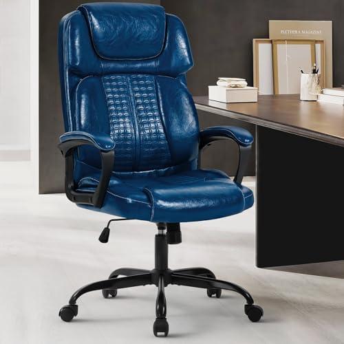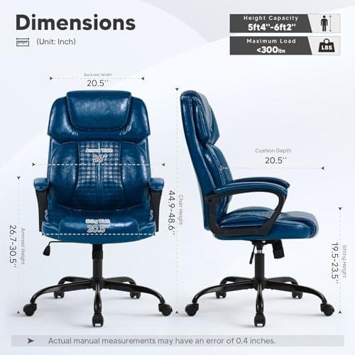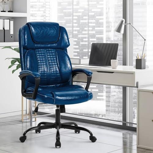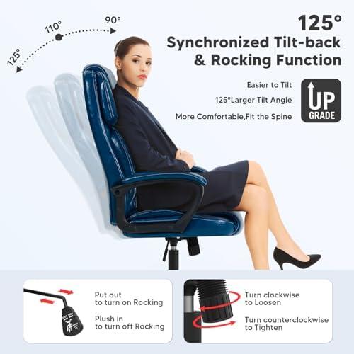 In considering a new addition to our home office setup, we found that this chair truly stands out for its ergonomic features and comfort. With a height-adjustable seat and a tilt control function allowing a 125° synchro tilt, it significantly alleviates stress on our spine during long working hours. The padded armrests and thick seat cushion are crafted from high-quality, dense foam, which provides both support and softness, helping to reduce pressure on our hips and tailbone. Furthermore, the chic navy-blue color and elegant design enhance the aesthetics of any workspace, ensuring we not only feel good while working but also look good doing it.