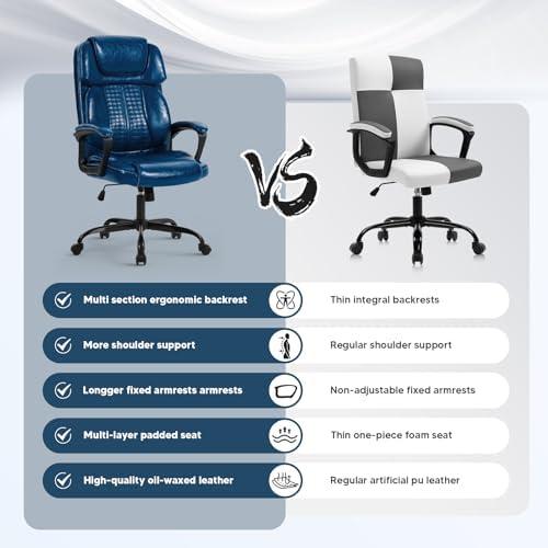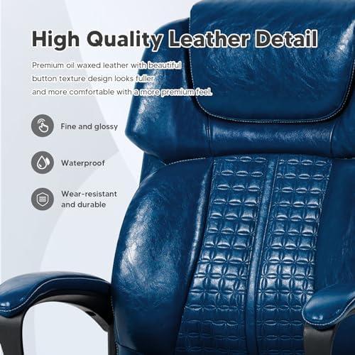 The navy-blue color of this chair effortlessly elevates any workspace, exuding both sophistication and professionalism. It features a shiny oil-waxed leather finish that not only adds a touch of elegance but also ensures durability. Complemented by refined stitching details, this design offers a classic aesthetic that seamlessly fits into various decor styles, making it a versatile choice for any home office. Furthermore, the ergonomic structure promotes healthy posture, ensuring that our style isn’t compromised by comfort—it’s truly a harmonious blend of both.