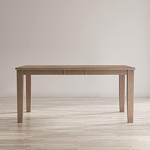 This extendable dining table combines classic American design with a modern twist, making it an ideal centerpiece for any kitchen or dining area. With its soothing blend of wire brush finishes, it exudes a casual charm that appeals to various aesthetic preferences. The table has a size of 66″ x 36″ x 30″H when extended, providing ample space for family gatherings or entertaining guests. For smaller spaces, the addition of a 12″ extension leaf allows the table to shrink down to a more compact 54″ x 36″ x 30″H, effortlessly fitting into tighter areas while still offering versatility.