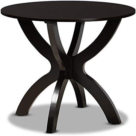 The dining table features smooth curves and a sleek finish, making it an attractive addition to both casual and formal dining settings. Constructed from sturdy rubberwood and MDF, it comfortably seats up to four people with ample elbow room thanks to its round tabletop. The stylish dark brown finish enhances its contemporary appeal, while the intersecting base adds a chic, sculptural effect. Although assembly is required, the straightforward setup allows for quick enjoyment of this elegant piece.