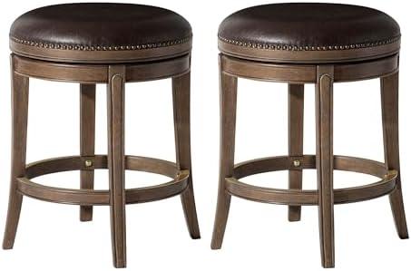 Featuring a 360-degree swivel mechanism, this backless barstool is designed for effortless movement, making it ideal for both lively gatherings and quiet mornings. The luxe vegan leather upholstery, paired with high-density padded foam, ensures a comfortable seating experience for you and your guests. Made with kiln-dried hardwood, these stools provide durability and stability, with a refined silhouette that fits seamlessly into various home styles. The subtle nailhead trim and wooden base add a touch of elegance, enhancing the overall aesthetic of your dining or kitchen area.