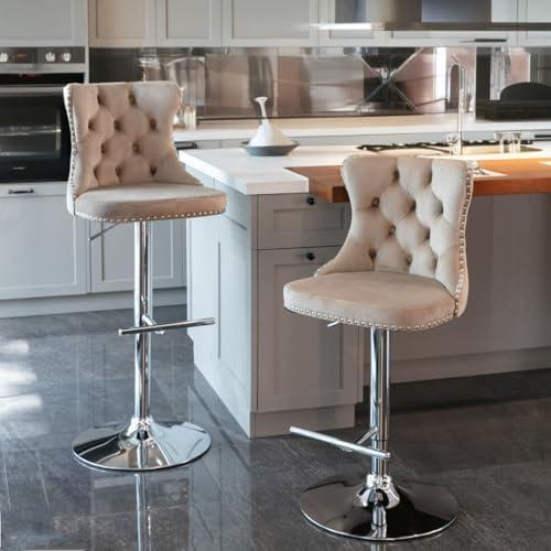 While the elegant appearance and ergonomic design are significant advantages, there are some considerations to keep in mind. The height adjustment mechanism may require some familiarity, which could pose a challenge for some users. Additionally, while the velvet upholstery adds a luxurious feel, it may require regular maintenance to keep it looking pristine. Nonetheless, these stools offer an excellent balance of form and function, making them a smart choice for any contemporary space.