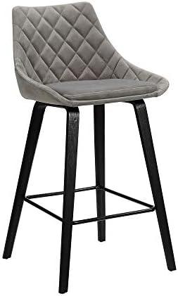 Benjara 26 Inch Velvet Upholstered Diamond Tufted Wood Leg Barstool, Gray, Black