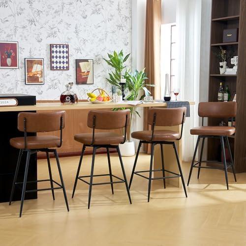 Constructed with a premium faux leather upholstery and a memory foam cushion, these bar stools offer an inviting seating experience that harmonizes style and comfort. The high back design ensures excellent lumbar support, promoting good posture during long periods of sitting. Ideal for kitchen islands or bars, their 27-inch seat height perfectly accommodates counters ranging from 35 to 40 inches. With a 360° swivel feature, these stools allow easy interaction with family and friends, making them perfect for gatherings. The sturdy metal legs, crafted with hand-bent and hand-welded techniques, not only enhance durability but also contribute to the timeless elegance of the design.