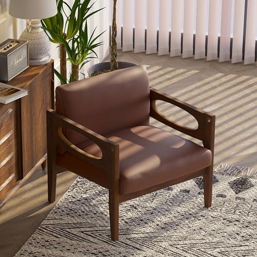 This accent chair combines style and functionality, making it an excellent addition to any space. The chair boasts a waterproof and stain-resistant PU leather surface, ensuring it remains easy to clean while retaining its chic appearance. The oversized cushion is securely attached, providing both softness and durability. Constructed from solid rubber wood, this piece is designed to last, showcasing an environmentally friendly paint finish that highlights a beautiful natural veining pattern. The high-density sponge along with the S-spring and elastic band construction delivers significant resilience, allowing for a comfortable seating experience that holds up over time.