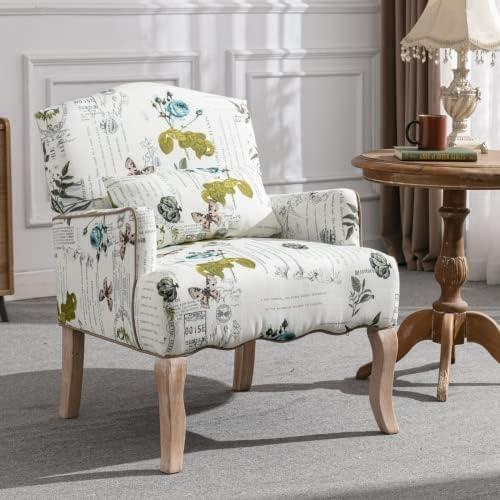This charming armchair features a unique beige butterfly pattern that adds a pop of color and elegance to any room. Its modern design blends seamlessly with various interior styles, whether in a cozy living room, a bedroom nook, or a serene reading corner. The chair is constructed with a strong rubber wood frame that supports a substantial weight capacity of up to 300 lbs. Comfort is prioritized with high-density sponge filling, providing a thick and plush seat along with a removable pillow for added lumbar support, making it perfect for leisurely activities like reading, watching TV, or taking a nap.