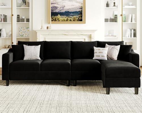 This L-shaped sectional offers a striking combination of style and functionality with its rich black velvet fabric and contemporary design, making it a fitting centerpiece for any living room. The couch is engineered for comfort, featuring thick, high-quality foam seat cushions and plush back pillows that provide excellent support for a relaxing seating experience. With its removable, machine-washable cushions and anti-scratch material, it’s also pet-friendly and easy to maintain. Measuring 102.3″ in length, it offers ample space for up to five people, making it perfect for family gatherings or hosting friends.