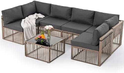 When considering the positives, the set’s versatility is a standout feature; it can be arranged in numerous configurations to fit various spaces, from patios to balconies. However, assembly can be a bit cumbersome, as it is delivered in two separate boxes, which can delay setup. Additionally, while the rattan is durable, some users may be concerned about its resistance to deep scratches. this outdoor sectional is a solid choice for anyone looking to enhance their patio or garden area with comfortable, stylish seating.
