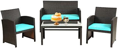 4-Piece Wicker Patio Conversation Set for Outdoor Spaces