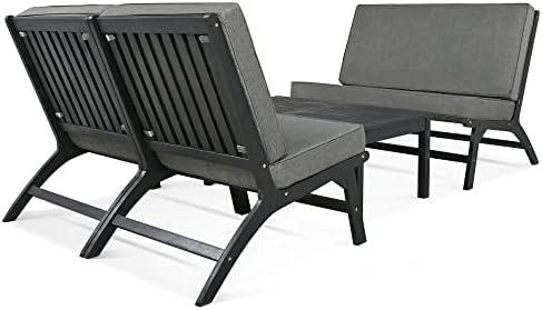 This contemporary patio furniture collection is a perfect addition for those looking to create a cozy outdoor lounge area. The V-shaped sectional design comfortably accommodates four people, ensuring a delightful setting for conversations, game nights, or family gatherings. Crafted from durable acacia wood, this set not only boasts a sleek black and gray color scheme but also features weather-resistant cushions that enhance comfort and style. The accompanying table is ideal for placing drinks, snacks, or decorative items, making it a versatile choice for gardens, backyards, or poolside.
