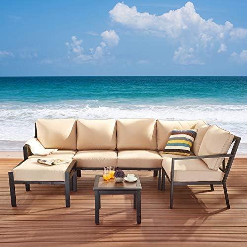 Modern Aluminum Patio Conversation Sectional Set for Outdoor Relaxation