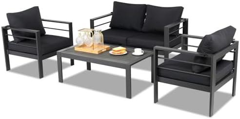 While this furniture set scores high on style and comfort, potential buyers should consider some drawbacks. The lightweight aluminum may be prone to tipping in strong winds, so proper placement and anchoring are essential. Additionally, while the imitation wood tabletop provides aesthetic appeal, some may prefer the authenticity of real wood. However, the cushioned covers feature a convenient zipper design, making them easy to remove for cleaning. this modern outdoor seating arrangement is an excellent choice for enhancing your outdoor area. Explore the Set on Amazon